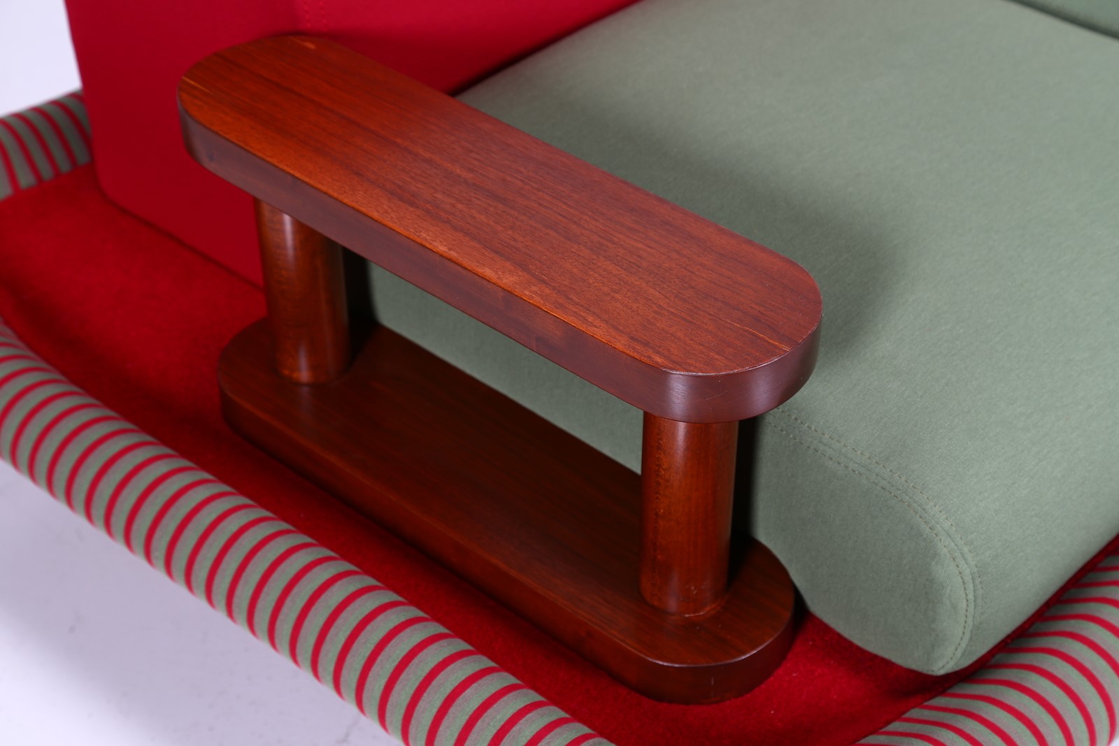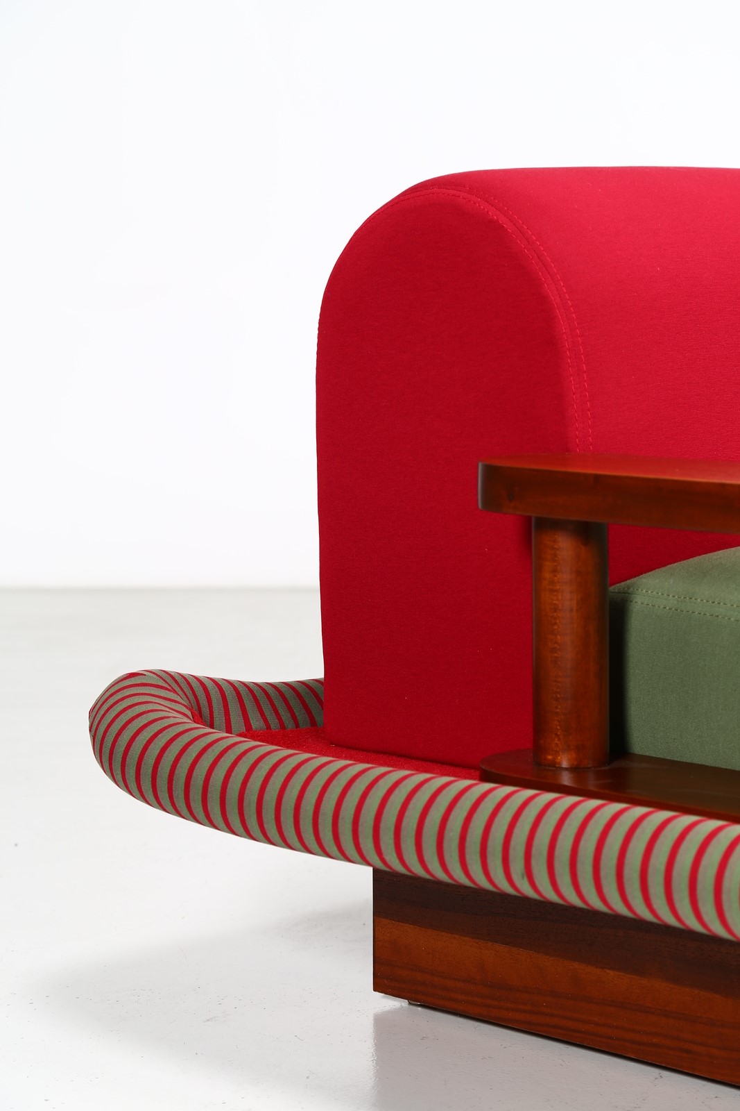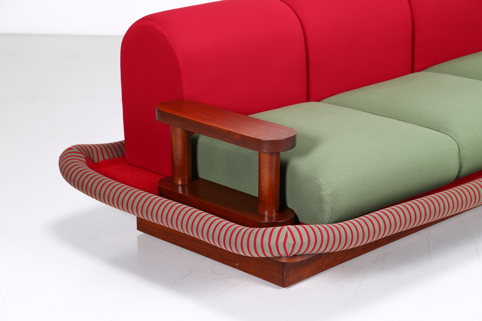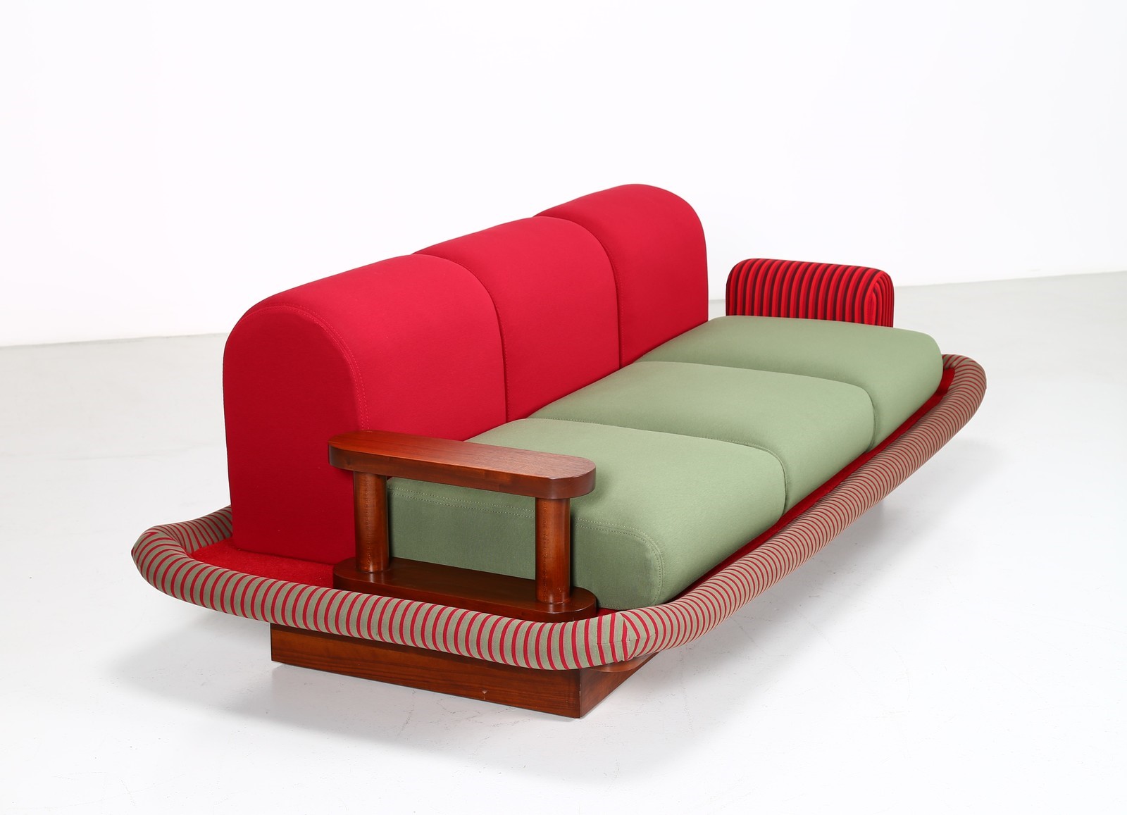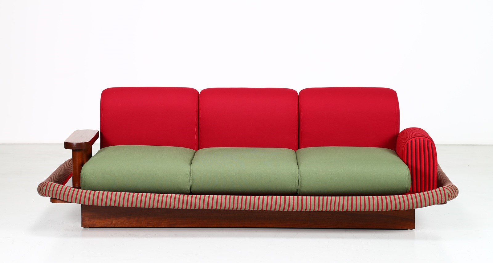 SOTTSASS ETTORE (1917 - 2007) Divano Tappeto Volante. -. . Struttura in legno, rivestimento in velluto e tessuto, per Bedding Brevetti, Casalguidi, 1974. Etichetta del produttore presente. Collezione Privata Italia. Pubblicazioni; Domus, n. 545, aprile 1975, p. 46 per un esempio della sedia; Andrea Branzi, The Hot House: Italian New Wave Design, Cambridge, 1984, p. 148 per un esempio della sedia; Barbara Radice, Ettore Sottsass: A Critical Biography, London, 1993, p. 172-73 per un esempio della sedia.