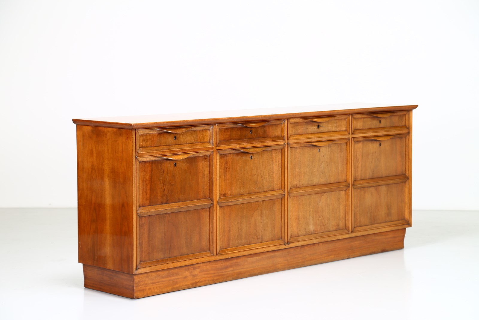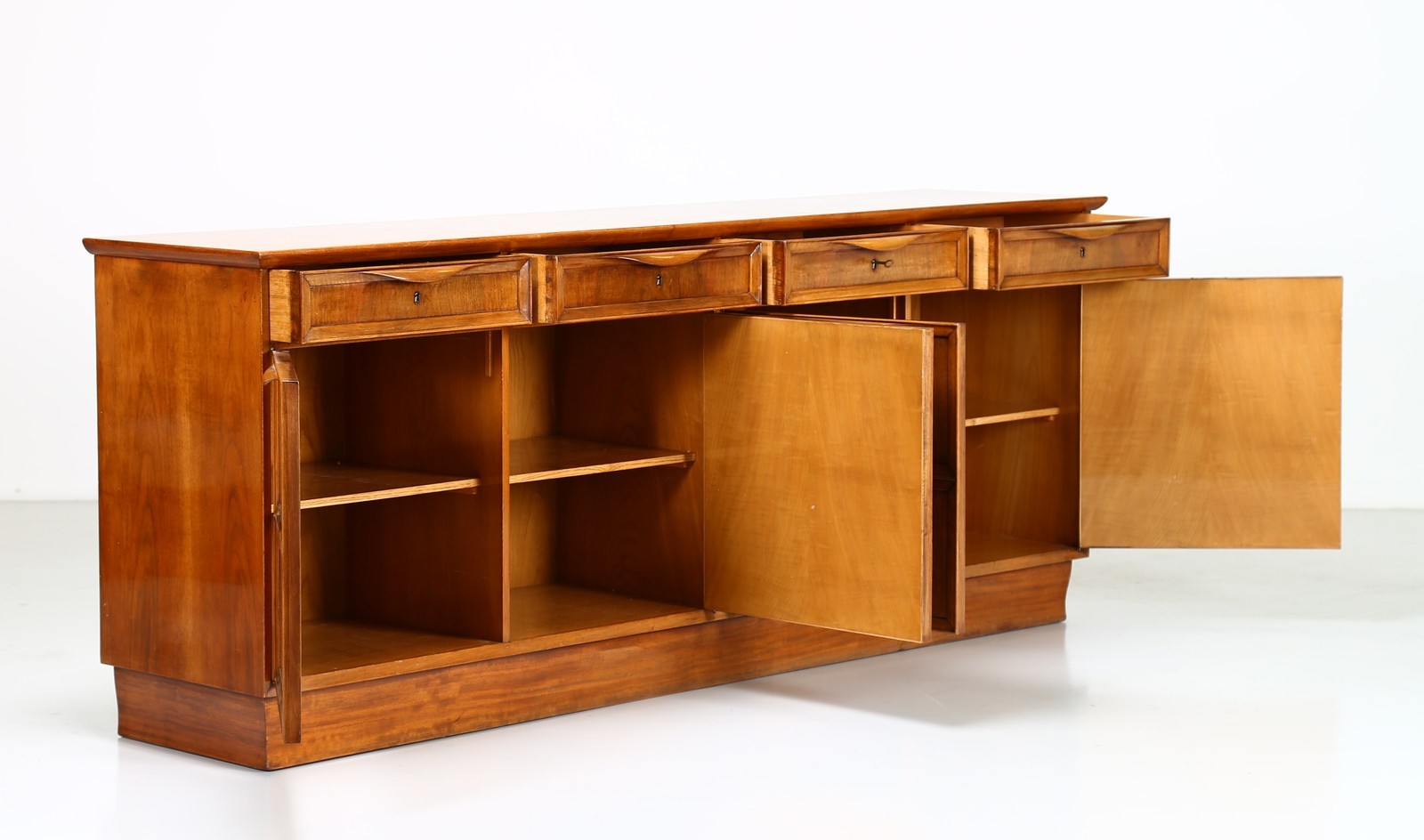 PECORINI GUGLIELMO Walnut sideboard. . Cm 252,00 x 101,00 x 55,00. Unique piece, part of the furniture of Casa Urbano Zaccagnini, Florence, 1935.