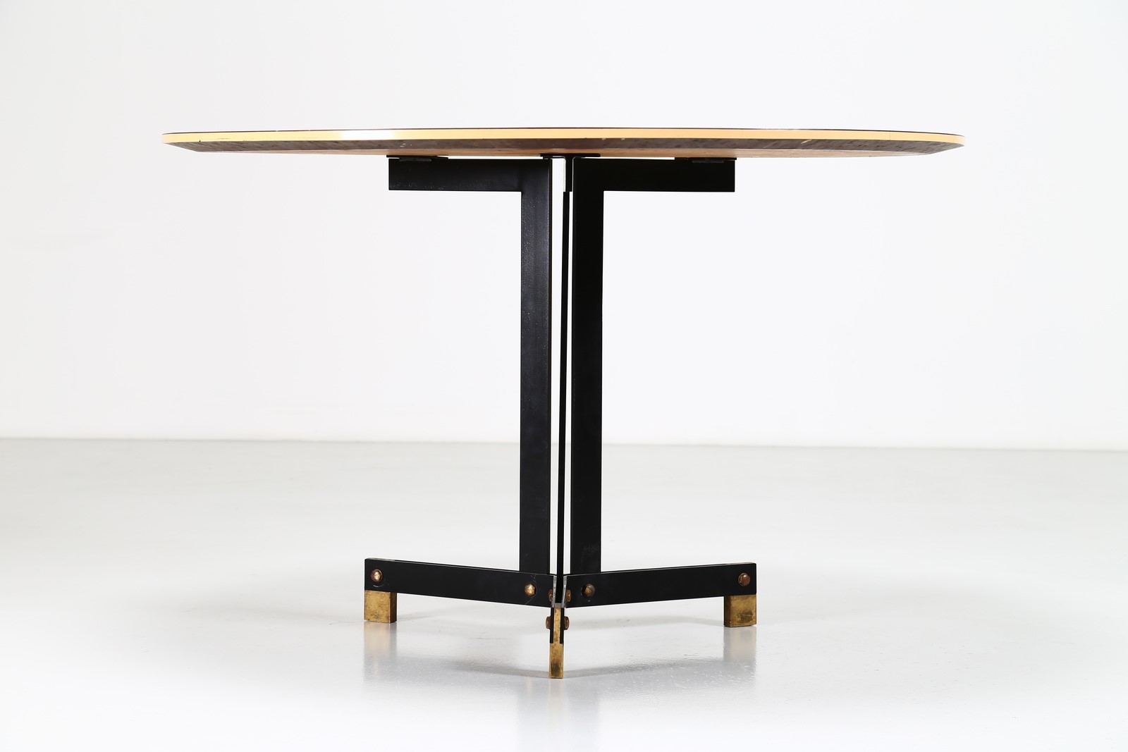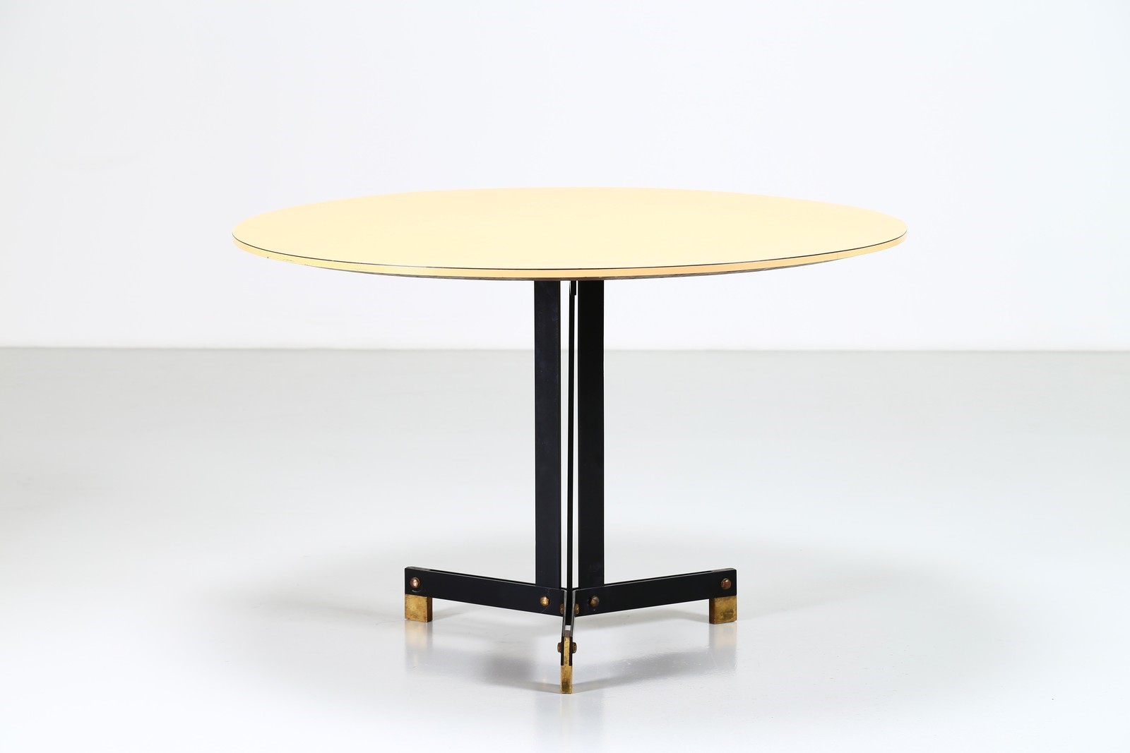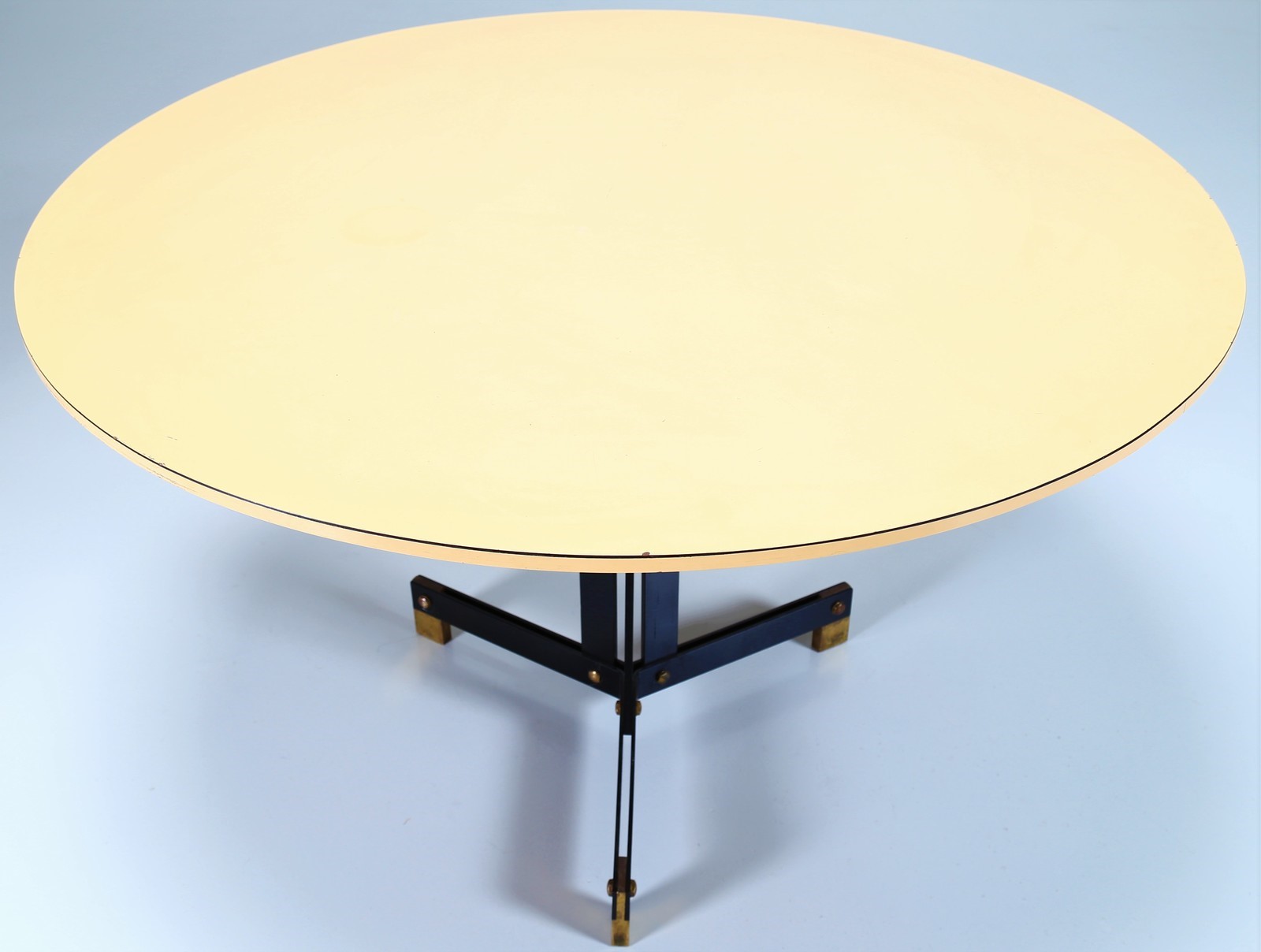 GARDELLA IGNAZIO (1905 - 1999) Round table. . Cm 120,00 x 77,00 x 120,00. Lacquered metal, brass and Formica, for Azucena, 1950s.