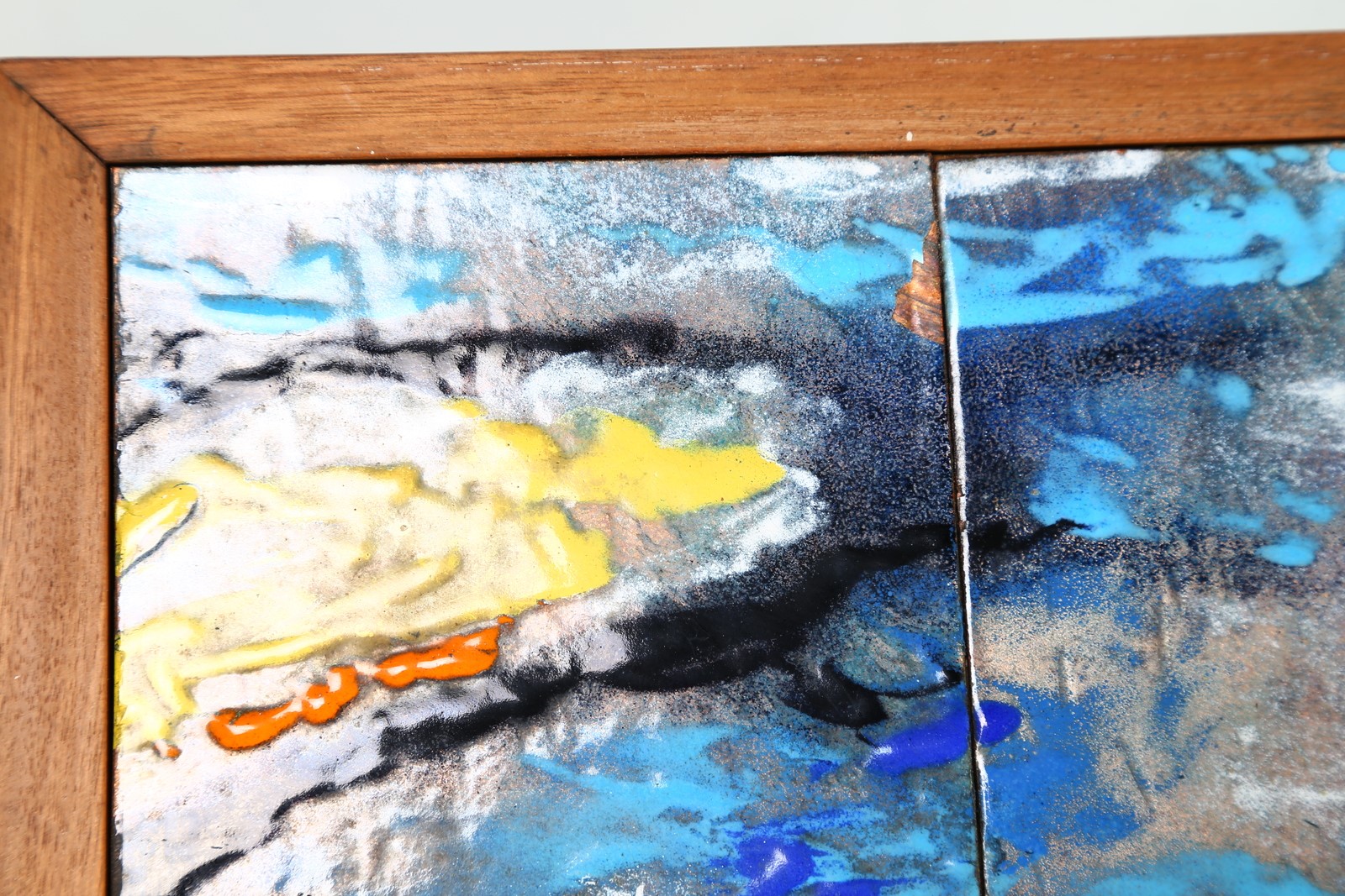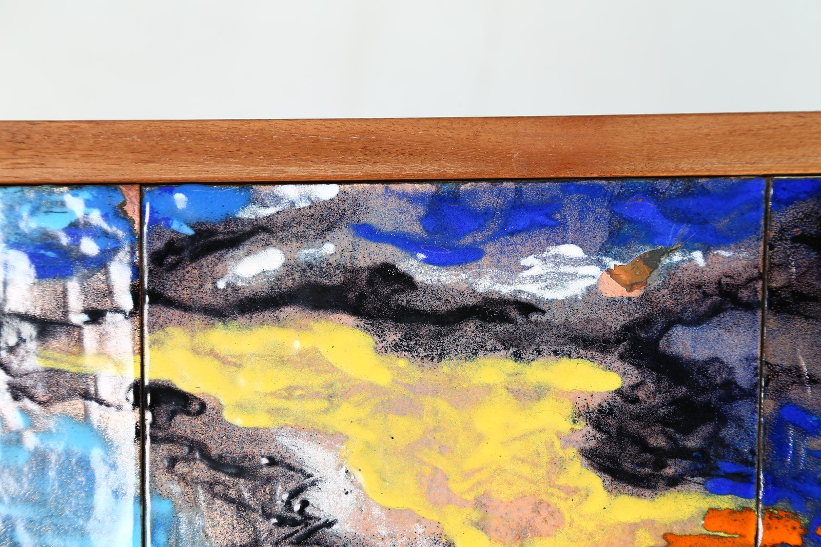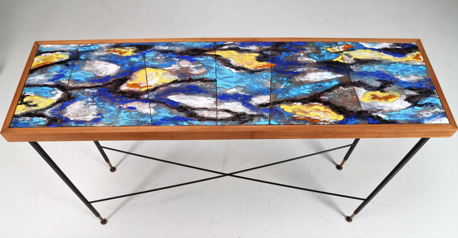 DE POLI PAOLO (1905 - 1996) Console table. . Cm 124,50 x 85,00 x 35,00. Lacquered metal, brass, wood, enamelled copper top, 1959. Signature and date present.