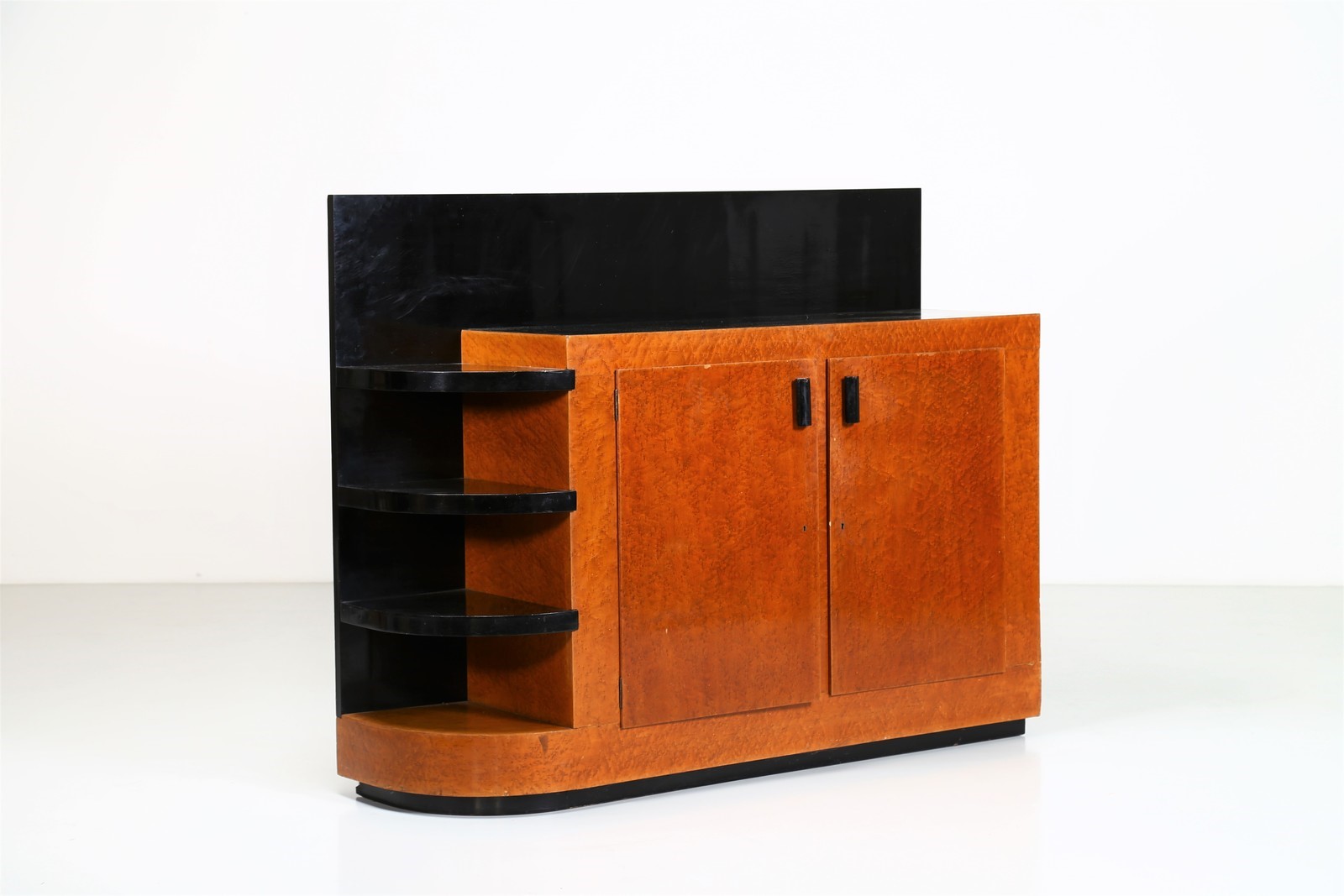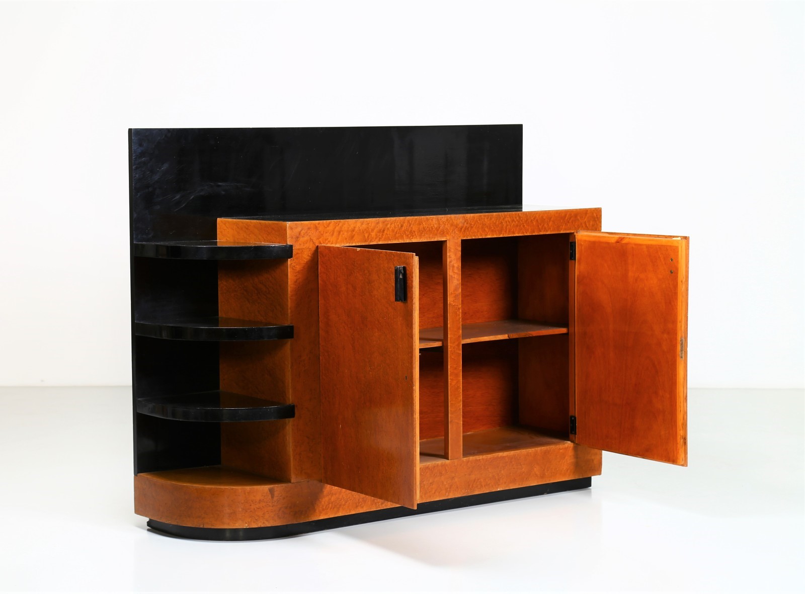 GINO LEVI MONTALCINI & GIUSEPPE PAGANO Sideboard. . Cm 178,00 x 142,00 x 52,00. Two-colour boxwood for Casa Caudano, Turin, 1930. Publications: Il mobile decò italiano by Irene De Guttry and Maria Paola Maino, published by Laterza.