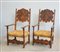 Due antiche poltrone rinascimentali con cartelle degli schienali riccamente...