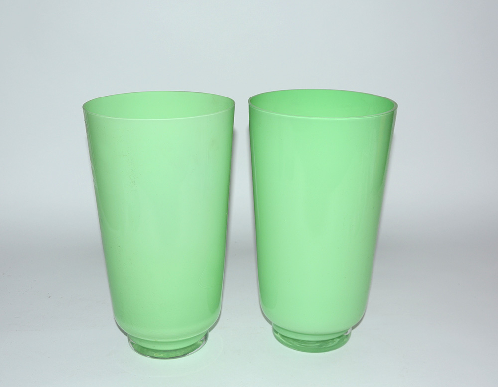 Lot 51 | Lotto composto da due vasi a cilindro in vetro verde opacizzato (h cm 30)