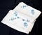 Tovaglia in lino operato, ricamata in seta azzurra a motivi medievali e...