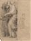 Scuola del secolo XIX "Due figure virili stanti" carboncino e rialzi a gessetto bianco su carta beige (mm 305x232) (difetti)