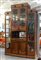 Vetrina liberty a tre corpi, di cui il centrale con parte bassa a due ante e un cassetto, ripiano a giorno e alzata a due ante con vetri incolori e rossi montati a piombo. Corpi laterali a vetrina di analoga fattura. Milano, 1905ca. Struttura in legno di rovere, lastronatura in mogano biondo, intarsi fitomorfi geometrizzati in diversi legni chiari, maniglie e placche decorative in fusione di bronzo. (h cm 260) (difetti)