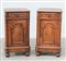 Coppia di comodini umbertini lastronati in noce ad un cassetto e uno sportello, piedi a cipolla (cm 43x78x37) (difetti)