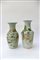 Due vasi in porcellana policroma con figure e calligrafia (h. max cm 46) Basi...