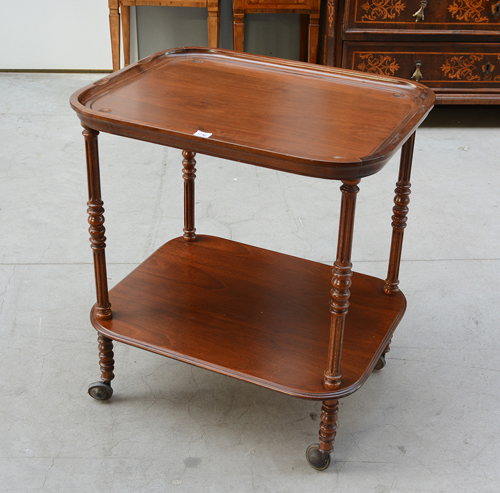 Carrello a due ripiani con montanti e gambe torite terminati con rotelle (cm...