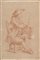 Artista francese del secolo XVIII "Artista seduto" litografia incollata al verso di un acquaforte raffigurante "Putti" (mm 292x201)