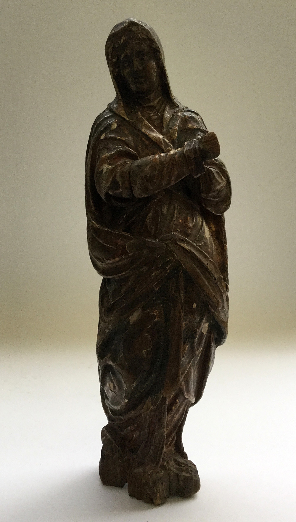 Arte del secolo XVII "Madonna" scultura lignea con tracce di dorature e policromia (h. cm 48 circa) (difetti e mancanze)