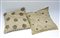 Due cuscini confezionati con tessuti in lino ricamato in seta e fili di rame...
