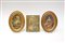 Lotto composto da due ovali in ceramica dipinta raffiguranti personaggi femminili e una placca in bronzo con profilo di nobildonna (lievi difetti)