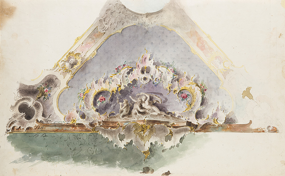(attributed) "Study for a ceiling" watercolour (mm 300x480) with inscription M.B. (defects)