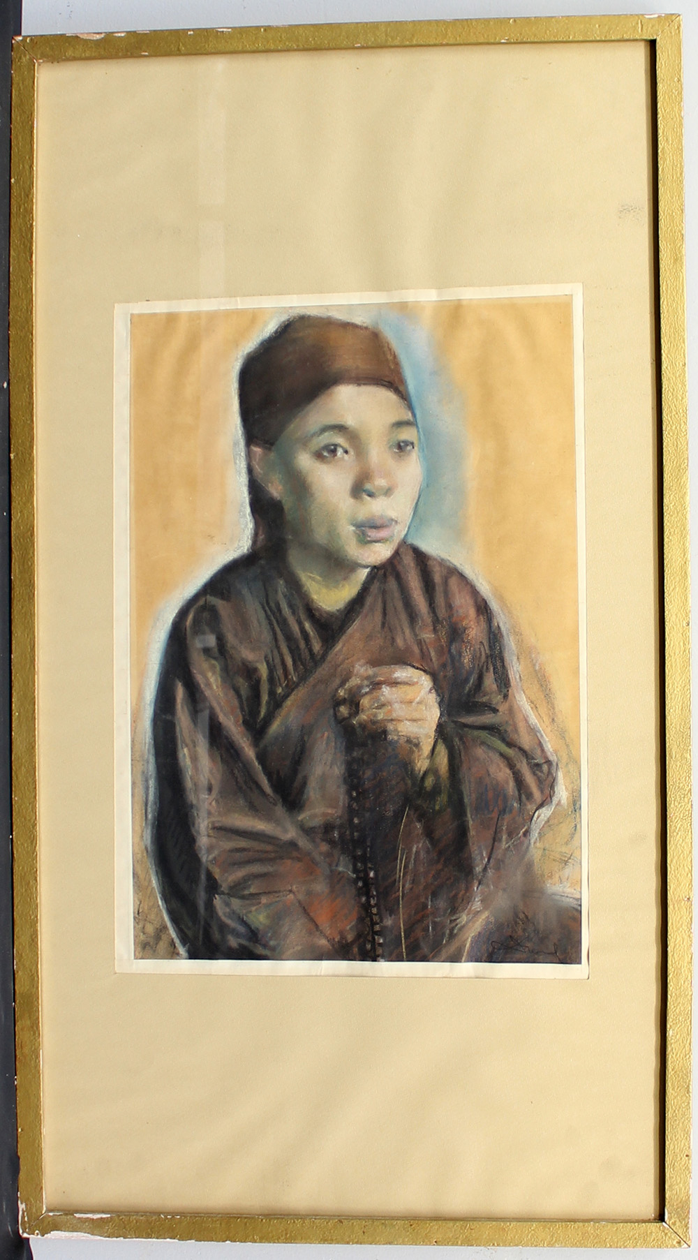Firma indecifrata "Figura orientale" pastelli su carta (cm 54x36) Firmato in basso a destra. In cornice