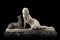 Sculture dell'inizio del secolo XX "Figura con cane" gruppo in bronzo e marmo