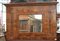Caminiera con cornice lastronata in noce e intarsiata a volute e motivi...