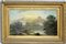 Scuola del sec. XIX "Paesaggio lacustre con imbarcazione e figure" olio su tela (cm 43x80) in cornice (difetti)