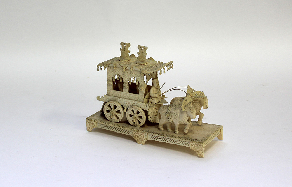 Scultura in avorio raffigurante carro. Cina, inizio secolo XX (cm 24x18)