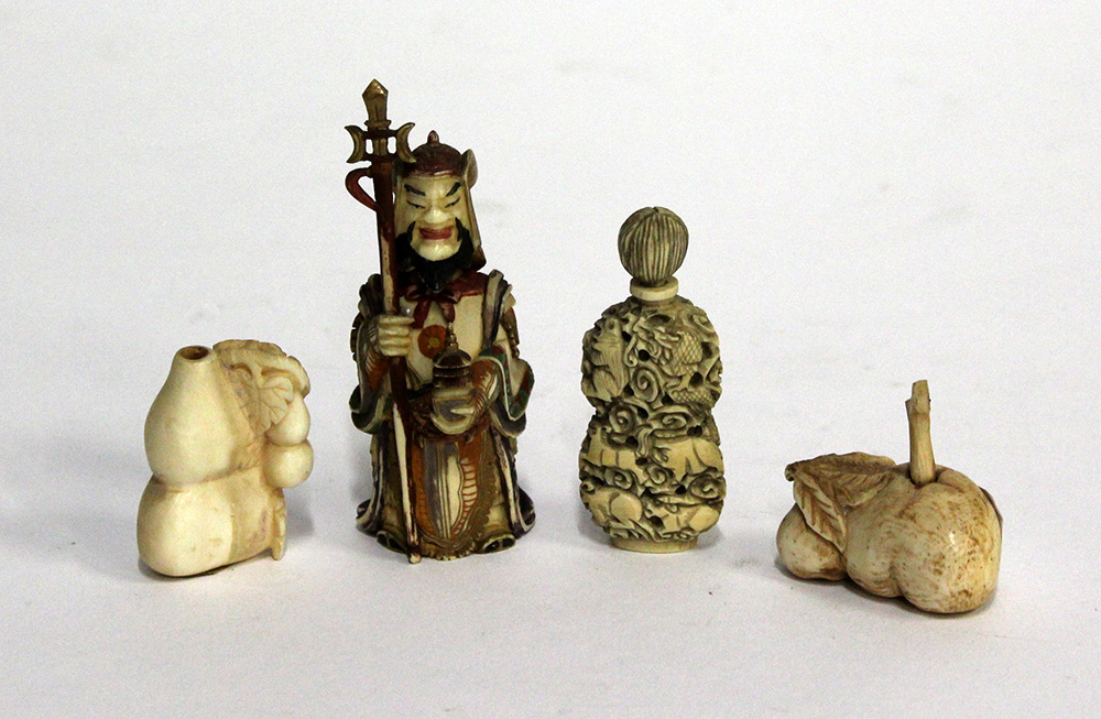 Gruppo di quattro snuff-bottles in avorio. Cina, inizio secolo XX (h max cm 9) (difetti e mancanze)