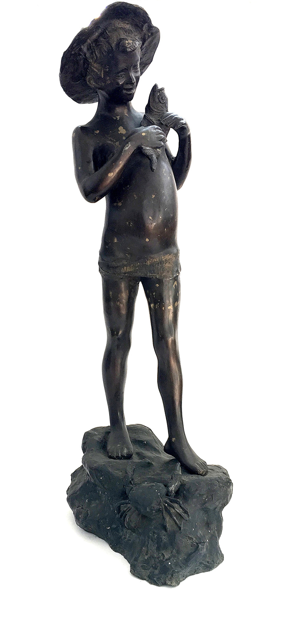 Ignoto "Pescatore" scultura in bronzo (h cm 70) firmata Varlese sulla base (difetti)