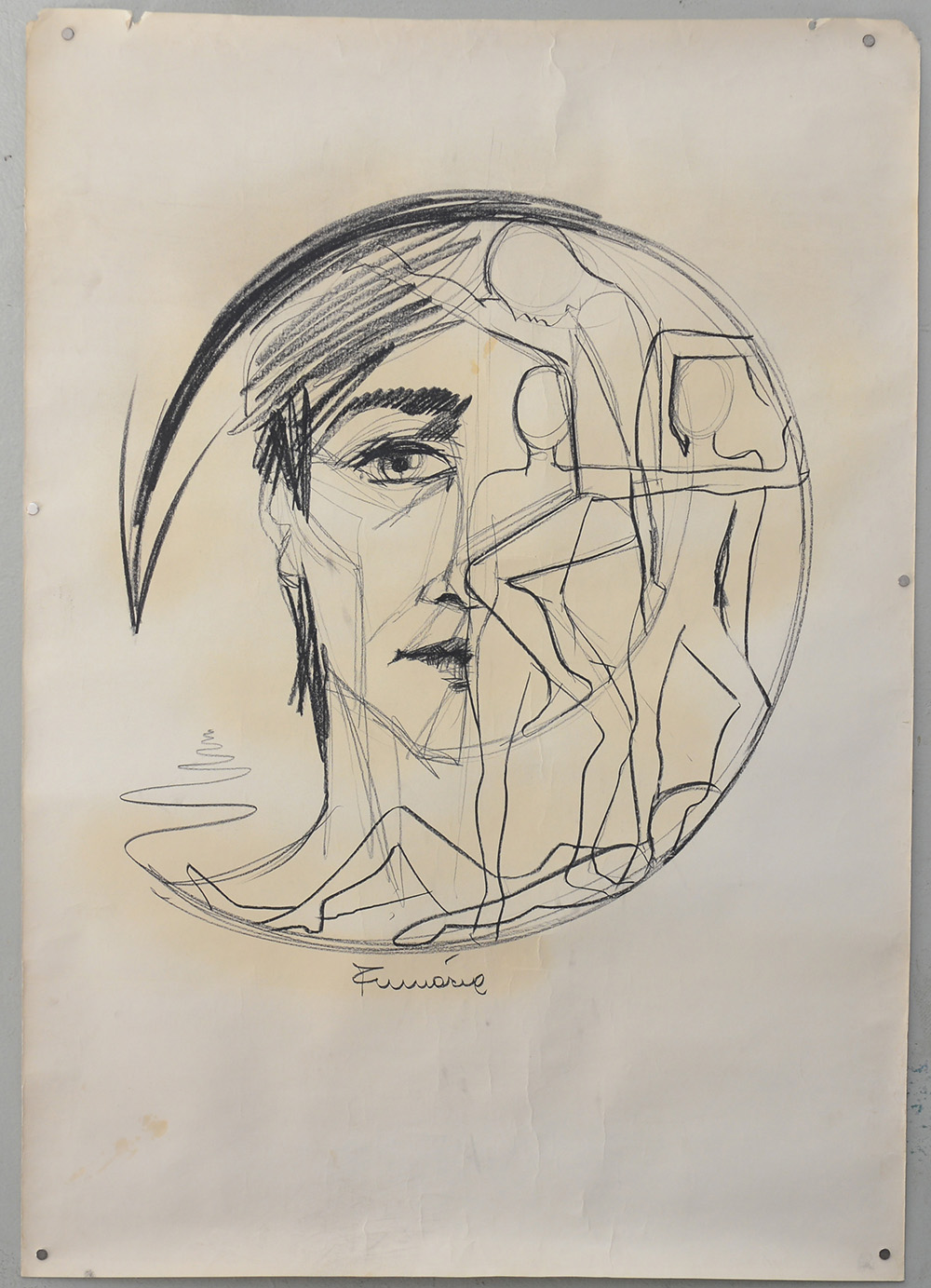 Firma indecifrata, ''Composizione con figure'' disegno a pastello su carta...