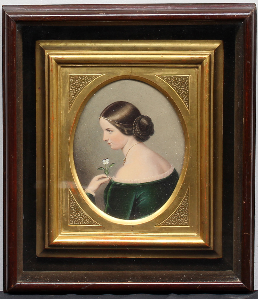 Maestro dell'inizio del XIX Secolo "Nobildonna con fiore" tecnica mista su carta (cm 19x15) In cornice