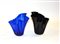 Lotto composto da due vasi a fazzoletto, uno in vetro opacizzato nero e uno in vetro blu decorato a striature (h max cm 21) (lievi difetti)