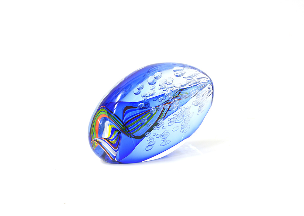 Manifattura di Murano.Scultura in vetro sommerso con bolla e spirale...