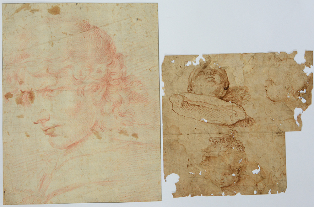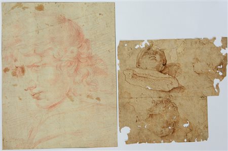 Gruppo di due disegni:Artista secolo XVII, "Studi di teste" penna e...