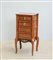 Comodino di forma sagomata lastronato in bois de rose e bois violet,...