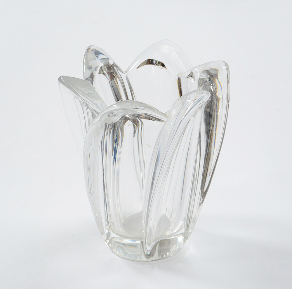 Manifattura francese.Vaso in cristallo costolato a sei lobi. Marcato...