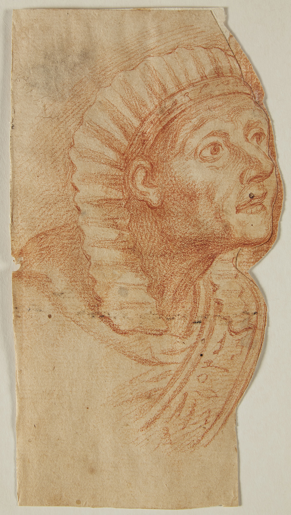 Artista del secolo XVIII "Studio di testa" matita rossa su carta sagomata (mm 162x90) (difetti)