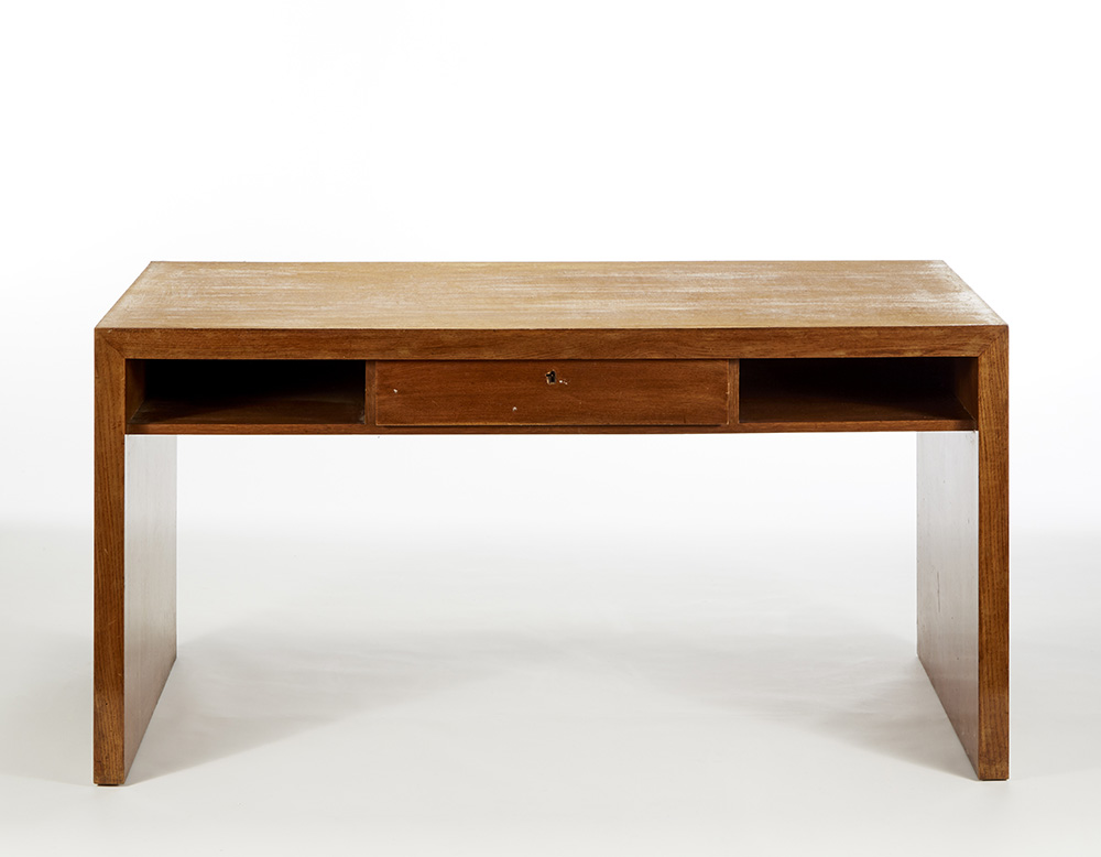Scrivania da centro con cassetto centrale e due vani laterali sottopiano. Italia, 1935ca. Legno di rovere. (cm 160x80x80) (difetti e mancanze)