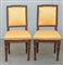Coppia di sedie in noce con schienale diritto. Gambe tornite e scanalate,...