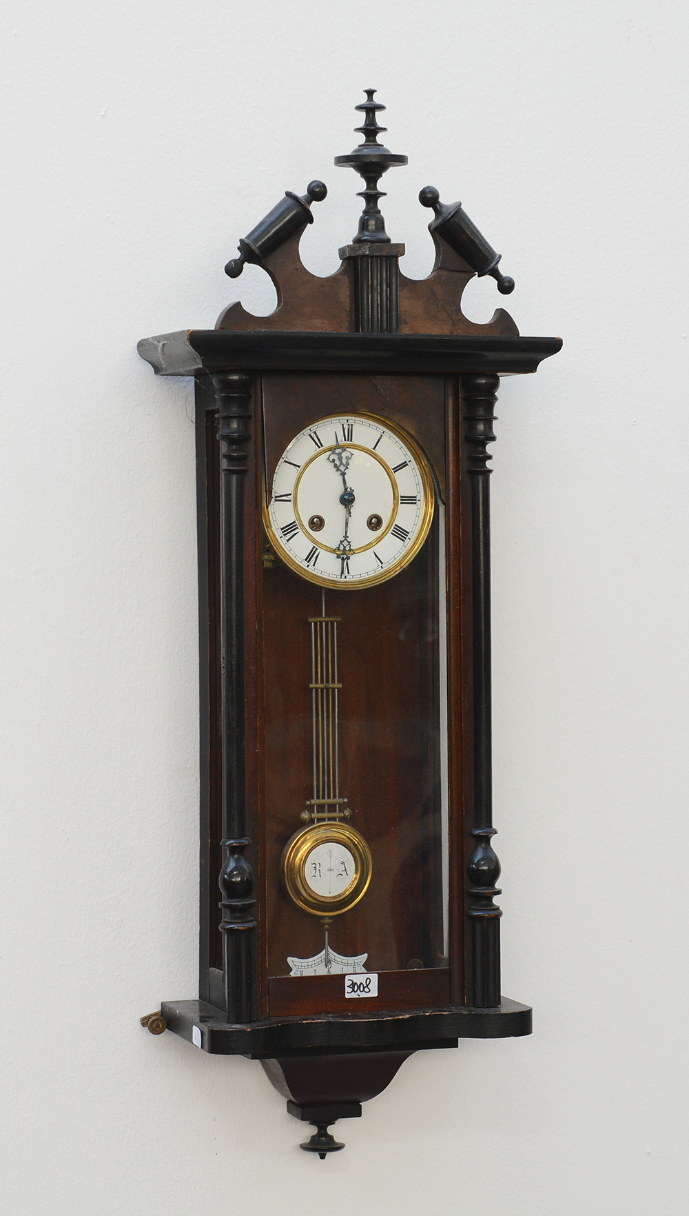 Pendola da parete con cassa in legno, montanti a mezza colonna tornita,...