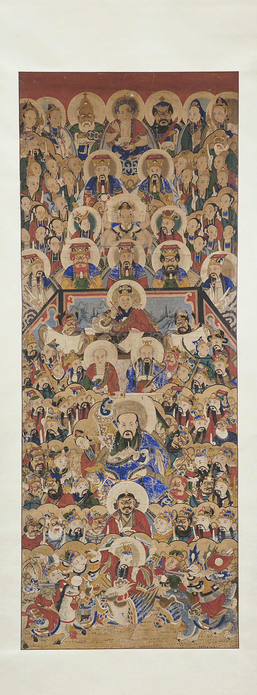 A painting depicting a group of ancestors, ink and colours on paper (slight defects)