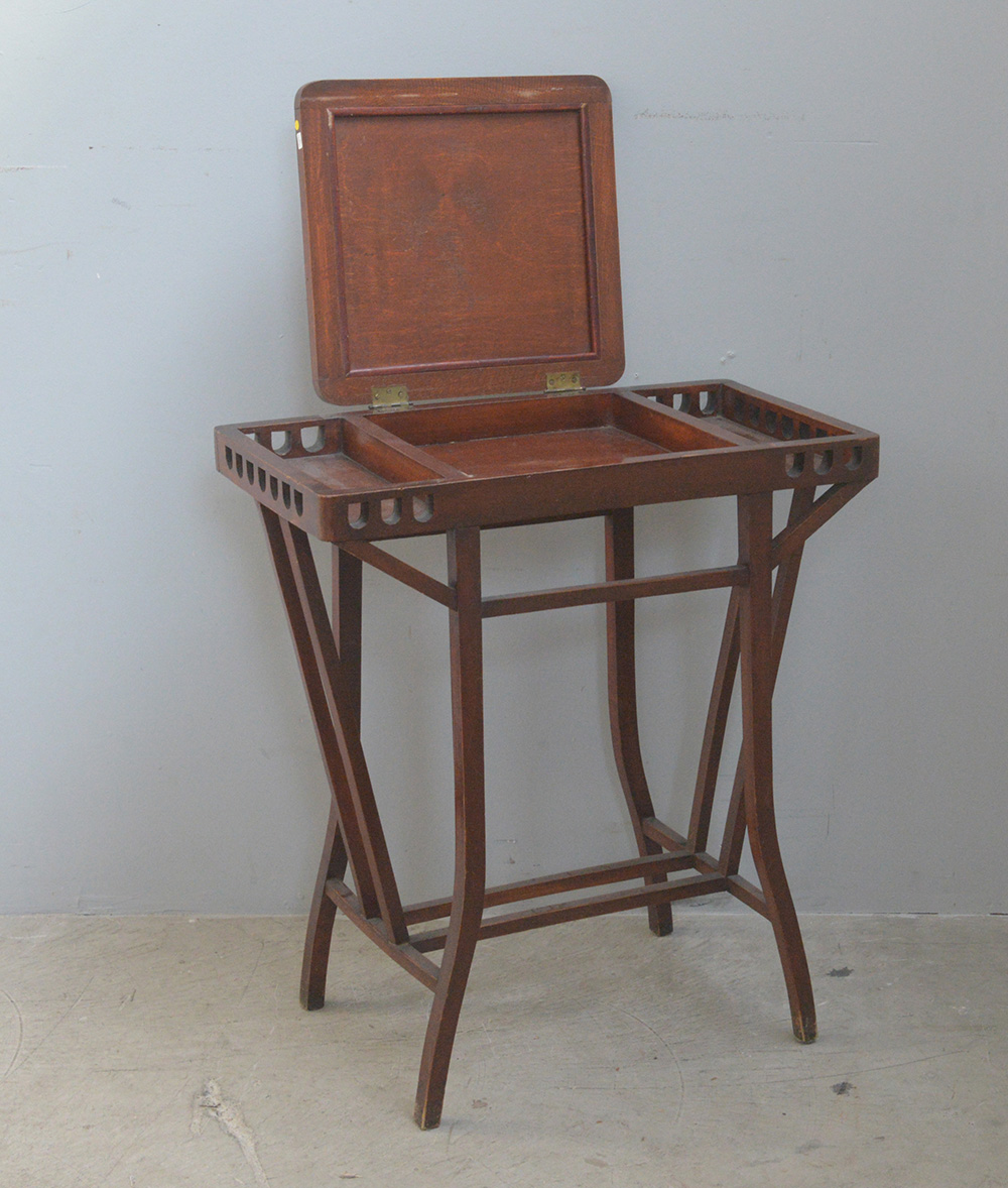 Tavolino da lavoro con pianetto apribile e sostegni squadrati (cm 62x69x34) (difetti)