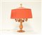 Manifattura di Murano. Lampada da tavolo a quattro luci a forma di candeliere. Paralume in tessuto rosso plissettato (h cm 48)(lievi difetti)