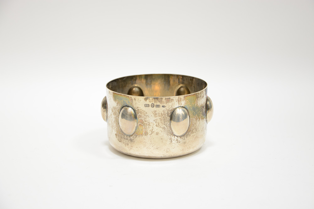 Ciotola in argento martellato, decorata a bugnature. Punzoni (gr 200) (lievi difetti)