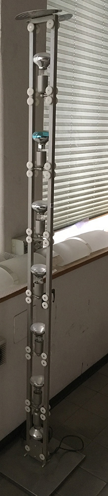 Lampada da terra con struttura in acciaio e metallo verniciato con paralumi in vetro satinato. Produzione recente. (h cm 199) (lievi difetti)