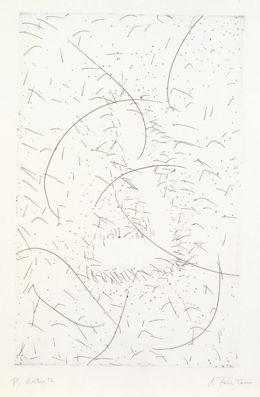 Lucio Fontana Rosario Santa Fè 1899 - Varese 1968 Il sette magnetico, 1968 Incisione all'acquatinta, es. p. artista, cm. 36x22,6 (lastra), cm. 45x31,5 (carta) Firma a matita sul margine in basso a destra: L. Fontana, tiratura in basso a sinistra: p. artista. 100 esemplari firmati e numerati più alcune prove d'artista. Stampatore Giorgio Upiglio, Milano; editore Arturo Schwarz, Milano. Bibliografia: Camillo Rigo, Harry Ruhé, Lucio Fontana, incisioni, grafica, multipli, pubblicazioni..., Reverdito Edizioni, Trento, 2007, p. 69, n. E-46.