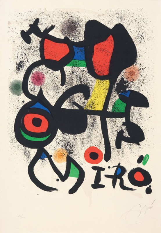 Joan Miró Barcellona 1893 - Palma di Maiorca 1983 Bronzes, 1972 Litografia a colori, es. 136/150, cm. 88,6x61,7 (carta) Firma a matita in basso a destra: Mirò, tiratura in basso a sinistra: 136/150. Manifesto per l'esposizione Bronzes, Londra, Hayward Gallery, 1972, tiratura di 150 esemplari avant la lettre su carta Arches, numerati e firmati, editore Arts Council, Londra, stampatore Arte Adrien Maeght, Parigi. Bibliografia: Joan Miró Litografo, IV, 1969-1972, La Poligrafa S.A., Barcelona, 1982, p. 189, n. 846.