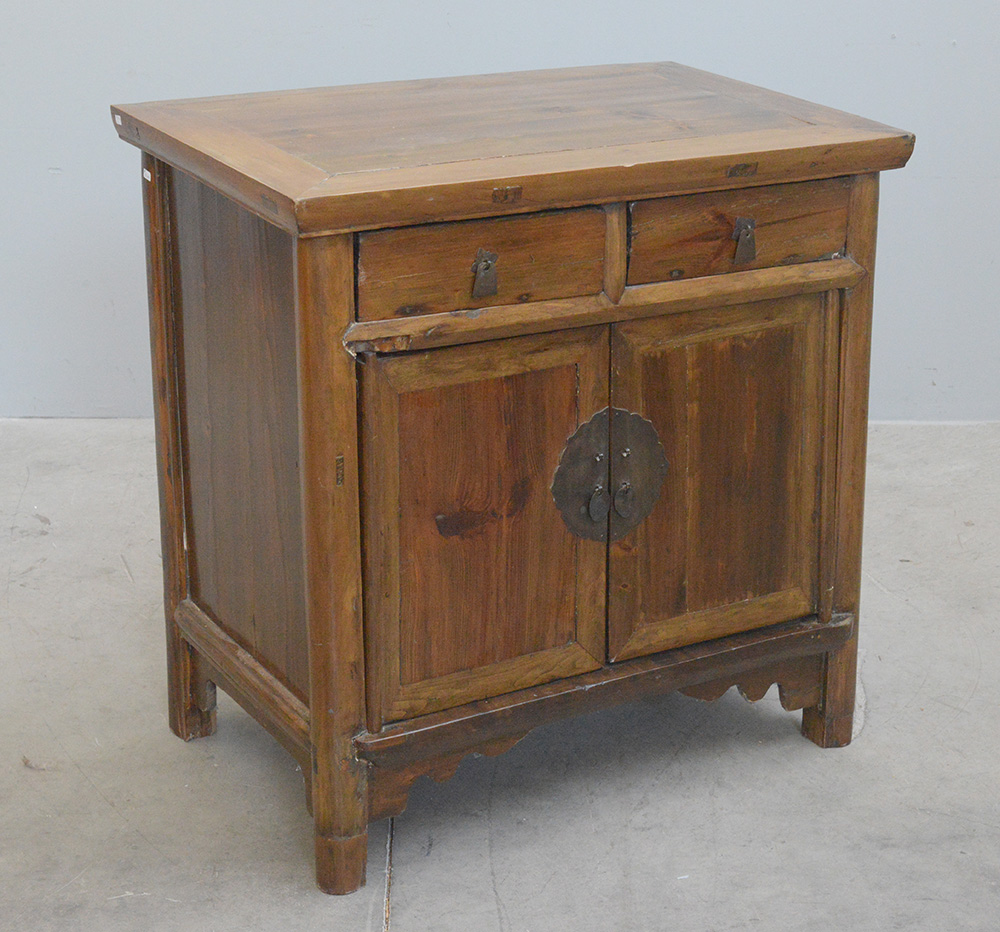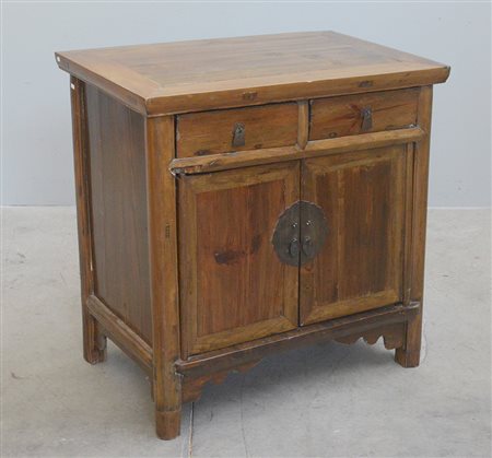 Mobile in legno a due ante e due cassetti. Cina, sec XX (cm 77x78x50) (difetti)