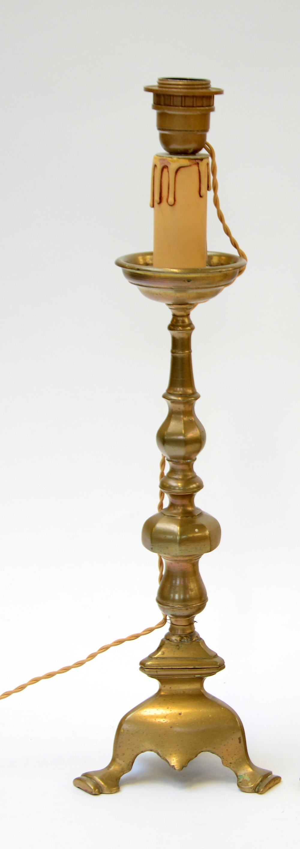 Candeliere a rocchetto in bronzo montato a luce elettrica (h cm 39)