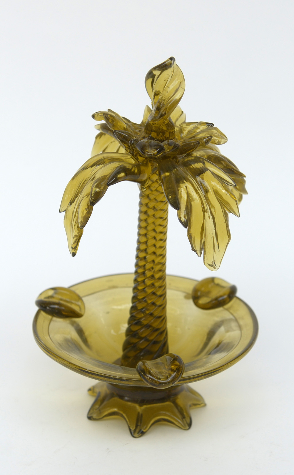 Scultura-posacenere in vetro pagliesco con formato a palmetta. Anni '30. (lievi difetti)