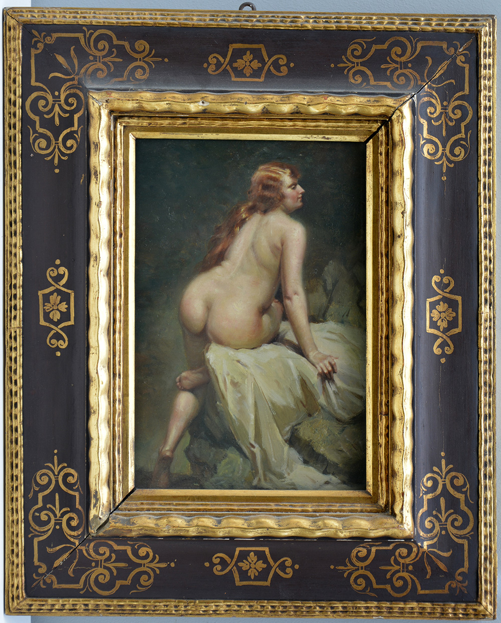 Ignoto "Nudo di donna" olio su compensato (cm 35x24) Al retro: iscritto F.Schommer. In cornice