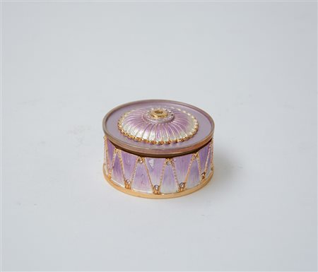 Scatolina tonda smaltata contenente un carillon (d cm 5) (difetti)