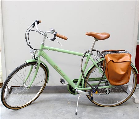 Bicicletta "Boulevard" da uomo color verde acqua con borse porta pacchi in pelle. Anno 2004 (difetti)