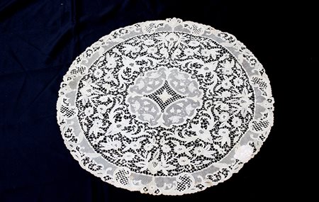 Grande centrino in pizzo Venezia in cotone, fine sec. XIX (d cm 64) (difetti)